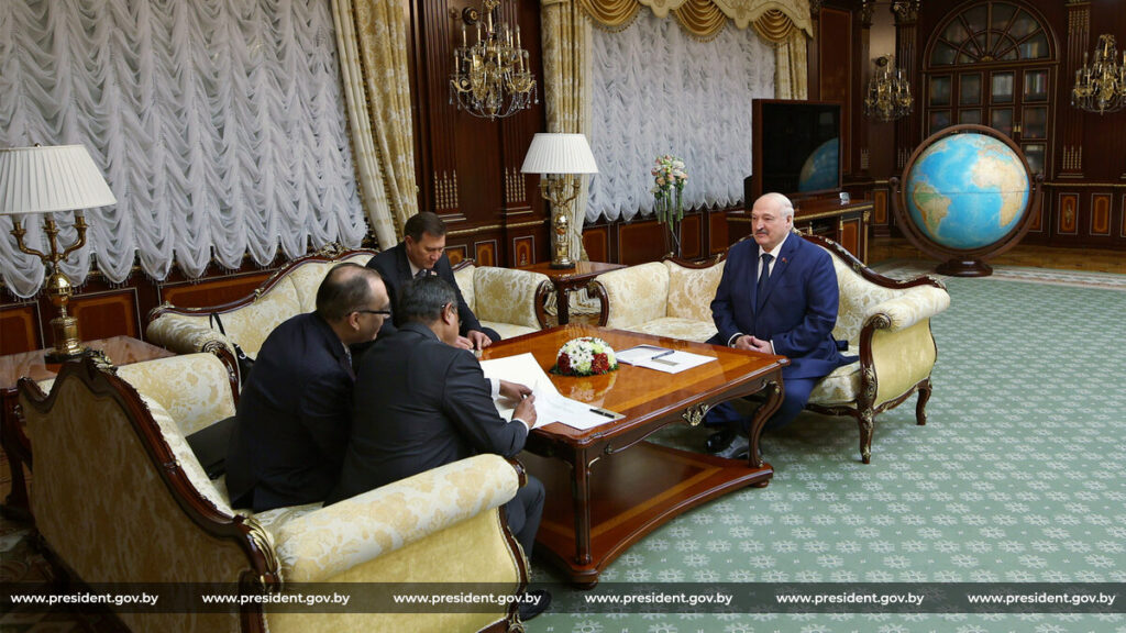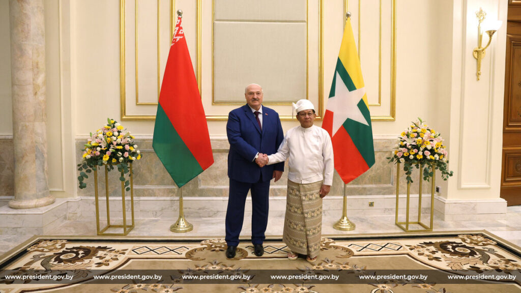 А в ноябре Александр Лукашенко впервые посетил с официальным визитом Республику Союз Мьянма, где провел переговоры с исполняющим обязанности Президента, Председателем Комиссии национальной безопасности и мира Мин Аун Хлайном в Президентском дворце в Нейпьидо.