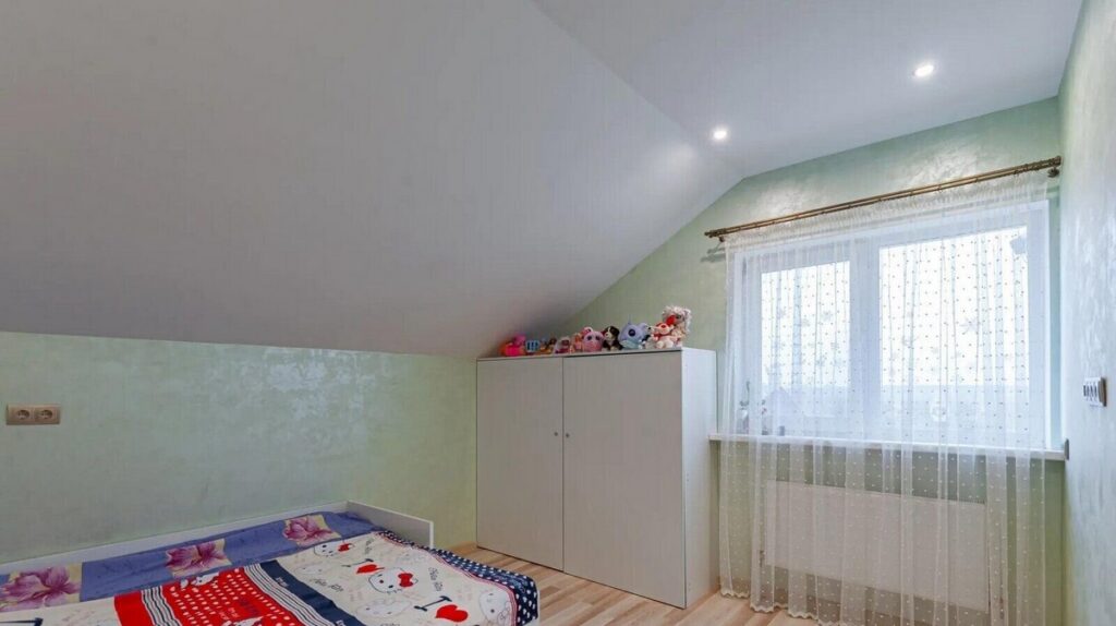 Двухэтажное жилье построено в 2016 году, и его конструкция выполнена из качественных блоков. Здание утеплено и оштукатурено, а крыша покрыта металлочерепицей. Общая площадь коттеджа составляет 119 квадратных метров.