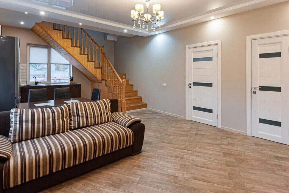 Удобства в этом коттедже не уступают городской квартире. Отопление осуществляется с помощью газа. Вода поступает из скважины, а местная канализация обеспечивает все необходимые условия для жизни. Также для дополнительного комфорта предусмотрены теплые полы.