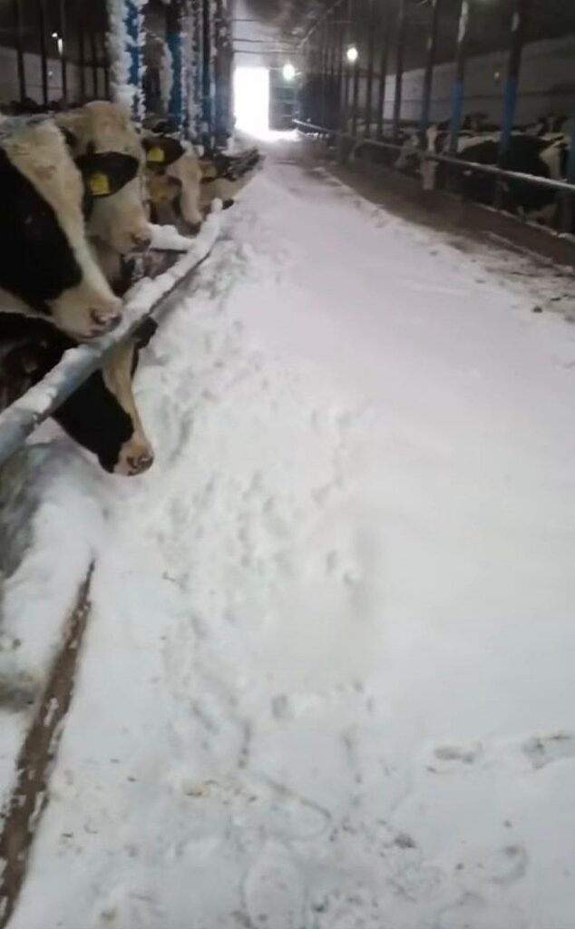 Возникают естественные вопросы: откуда в коровнике взялся снег и насколько достоверна информация, указанная автором видео?