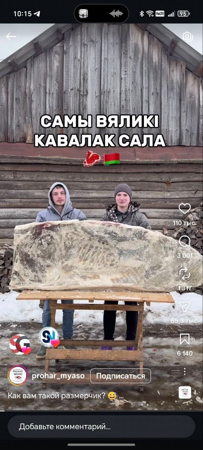 Они не рвутся завоёвывать столичные прилавки и не охотятся за заморским хамоном. Для них важнее всего правильно и вкусно приготовить продукцию, засолить сало так, чтобы оно таяло во рту, и сделать так, чтобы покупатель ощущал себя не просто клиентом, а желанным соседом. Знакомьтесь с героями нашумевшего ролика с огромным шматом сала — супругами из д. Лядно Слуцкого района, чьё дело строится на обычаях, преданности деревне и неподдельной душевной щедрости.