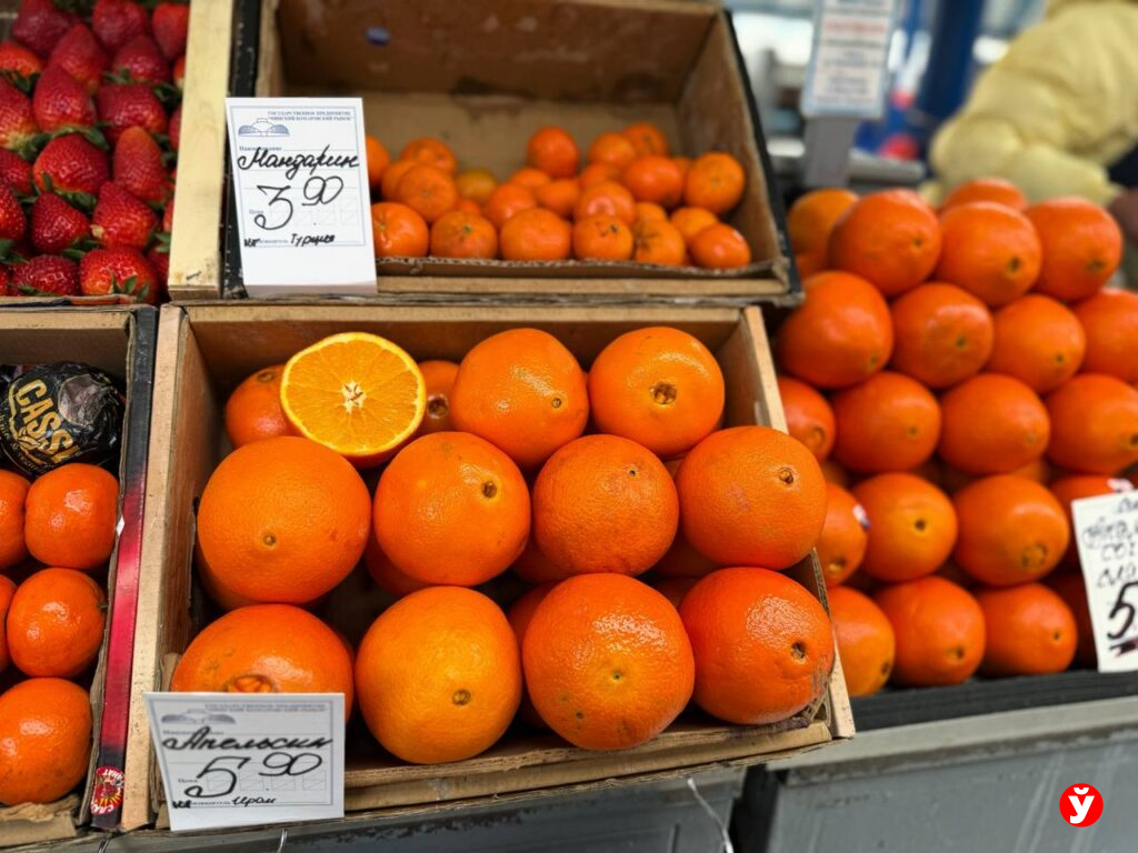 Цитрусовый ассортимент постепенно меняется. Сезон мандаринов подходит к завершению, и их место уверенно занимают апельсины. Сегодня именно они доминируют на прилавках. Цена — 5,90 рубля за килограмм.