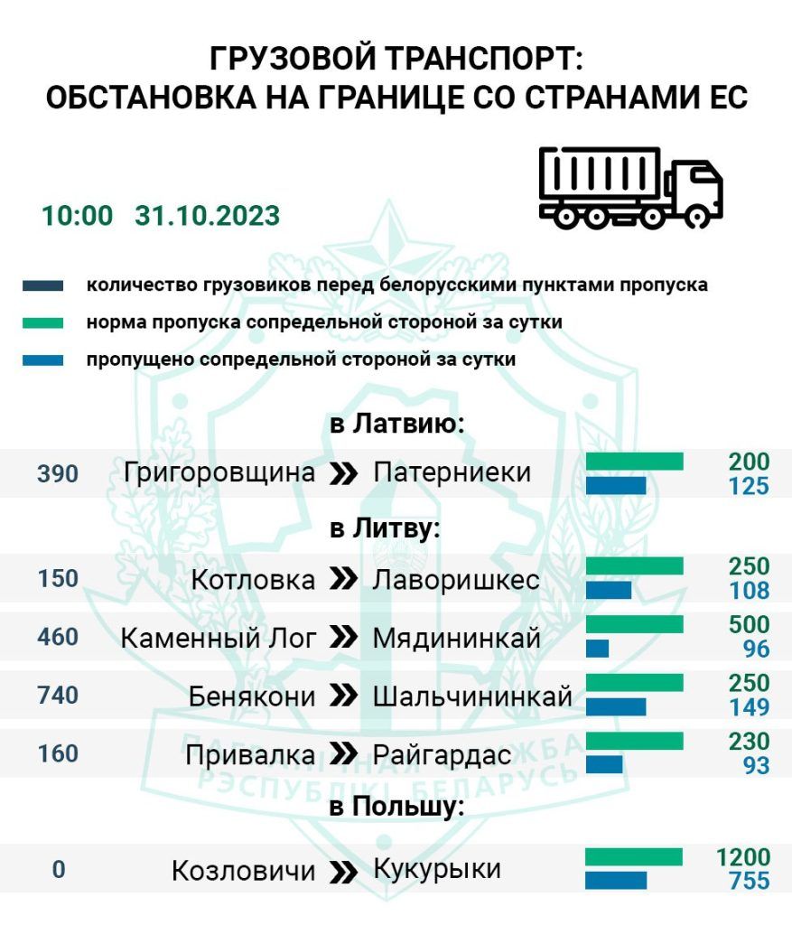 Очереди фур в Литву и Латвию в октябре продолжили расти. Власти соседних стран не принимали никаких мер по улучшению ситуации, напротив, провоцировали ее ухудшение, не соблюдая нормы пропуска транспортных средств. Об этом сообщает ГПК Беларуси.