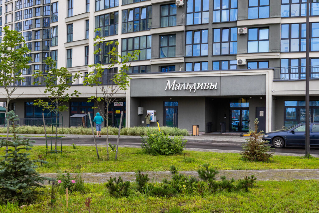 Квартира находится на пятом этаже современного здания по адресу Жореса Алферова, 16, в квартале «Тропические острова». Застройщик, который возводил это здание в 2023 году, выбрал для него вдохновляющее название «Мальдивы».