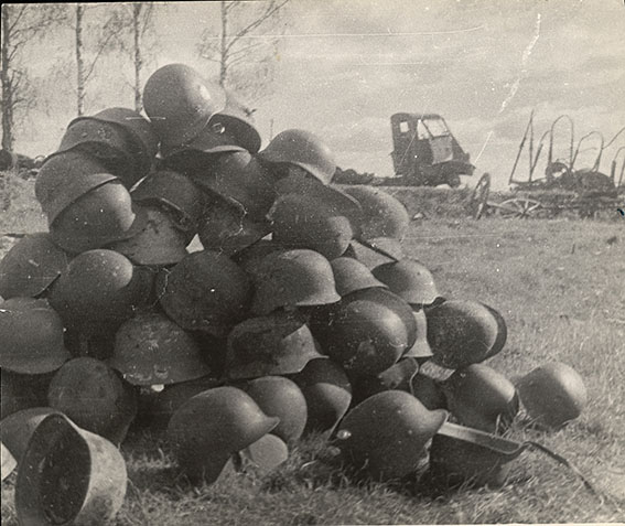 И еще: «У меня нет любимых и нелюбимых фотографий. Каждая дорога по-своему. Вот эту, например, считаю «апофеозом войны»: недалеко от Толочина я случайно нашел лужайку, заваленную немецкими касками. Сложил их в горку.